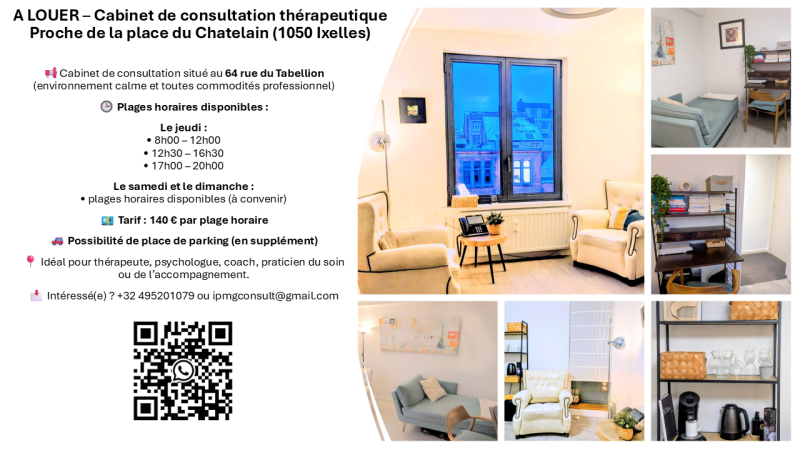 A LOUER - Cabinet de consultation thérapeutique - Proche de la place du Chatelain (1050 Ixelles)